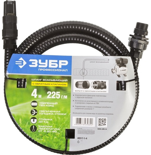 Шланг ЗУБР "ПРОФЕССИОНАЛ" всасывающий, с фильтром и обратным клапаном, 1", 4м [40317-1-4] купить в интернет-магазине TPShop.Ru. Наличный и безналичный расчет, розничные и оптовые продажи. Самовывоз, доставка по Москве и МО, отправка во все регионы России.