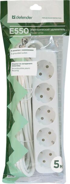 Defender Удлинитель E550 5.0 м, 5 розеток [99231], с заземлением