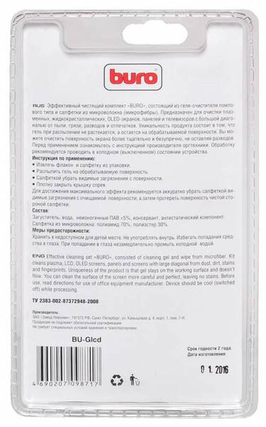 Чистящее средство Чистящее средство чистящий комплект (гель + микрофибра) Buro "BU-Glcd" для LCD, OLED и плазменных экранов (200мл) купить в интернет-магазине TPShop.Ru. Наличный и безналичный расчет, розничные и оптовые продажи. Самовывоз, доставка по Москве и МО, отправка во все регионы России.