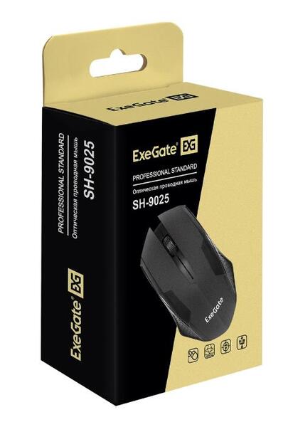Мышь Exegate SH-9025 <black, optical, 3btn/scroll, 1000dpi, USB>, Color box