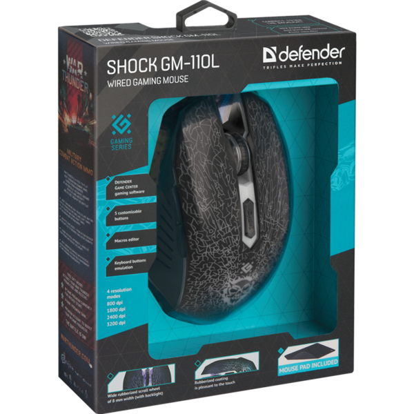 Defender Shock GM-110L [52110] {Проводная игровая мышь, оптика,6кнопок,800-3200dpi} купить в интернет-магазине TPShop.Ru. Наличный и безналичный расчет, розничные и оптовые продажи. Самовывоз, доставка по Москве и МО, отправка во все регионы России.