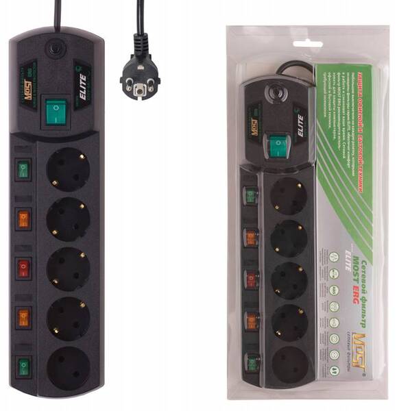 MOST ERG, Сетевой фильтр на 5 розеток, 2м, black