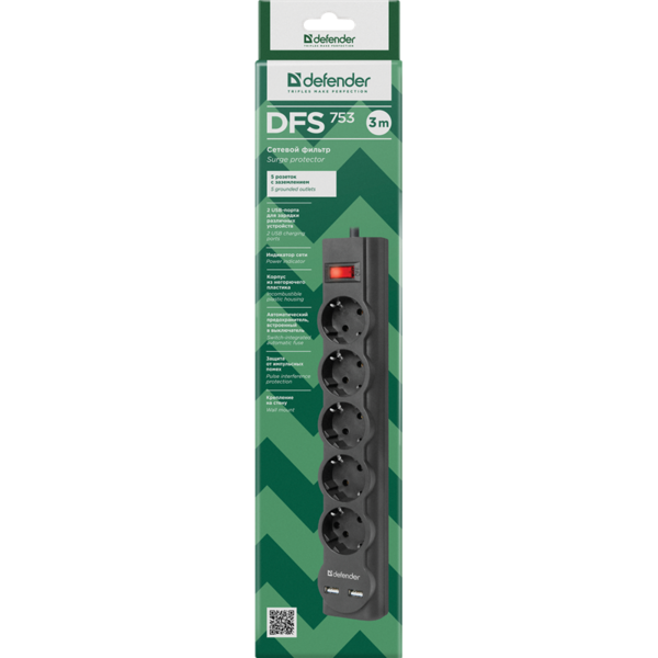 Сетевой фильтр 1.8M DFS 753 5OUTL. 99753 DEFENDER купить в интернет-магазине TPShop.Ru. Наличный и безналичный расчет, розничные и оптовые продажи. Самовывоз, доставка по Москве и МО, отправка во все регионы России.