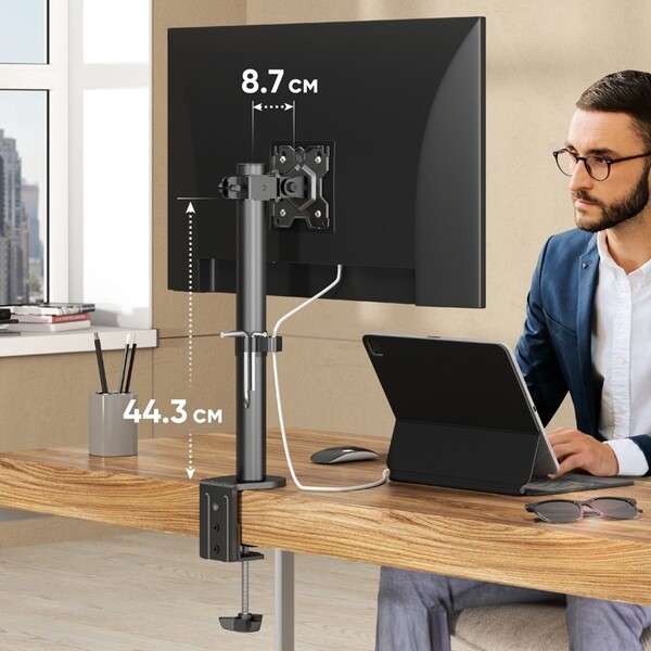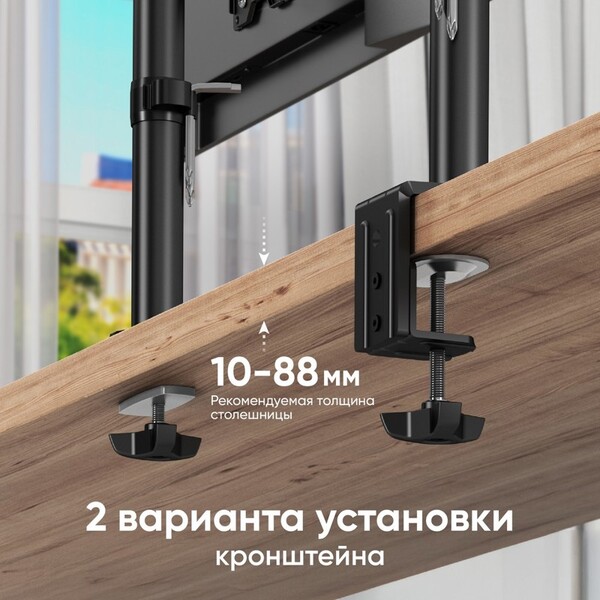 Кронштейн для монитора KRON/ 10-32" макс. 100*100, струбцина, наклон -85?+45? поворот 360?, вылет от основания 0-113мм, макс.перемещение по вертикали 200-380мм, нагрузка 10кг