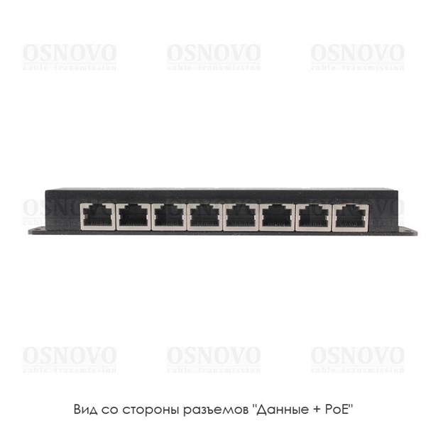 - RJ-45 (Ethernet) х 8; RJ-45 (Ethernet+PoE) х 8; DC5,5x2,1мм (розетка)