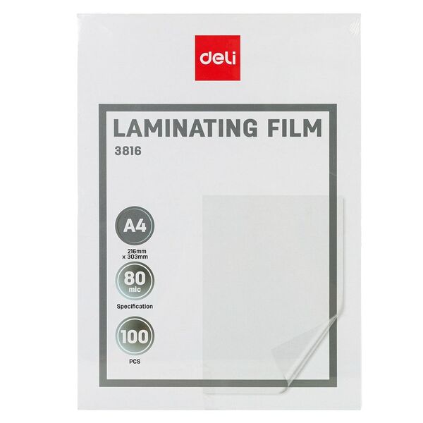 Пленка для ламинирования Deli 80мкм A4 (100шт) глянцевая 303x216мм E3816