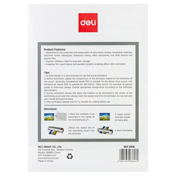 Пленка для ламинирования Deli 80мкм A4 (100шт) глянцевая 303x216мм E3816 купить в интернет-магазине TPShop.Ru. Наличный и безналичный расчет, розничные и оптовые продажи. Самовывоз, доставка по Москве и МО, отправка во все регионы России.