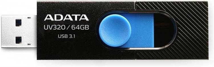 Флеш накопитель 64GB A-DATA UV320, USB 3.1, Черный/Голубой купить в интернет-магазине TPShop.Ru. Наличный и безналичный расчет, розничные и оптовые продажи. Самовывоз, доставка по Москве и МО, отправка во все регионы России.