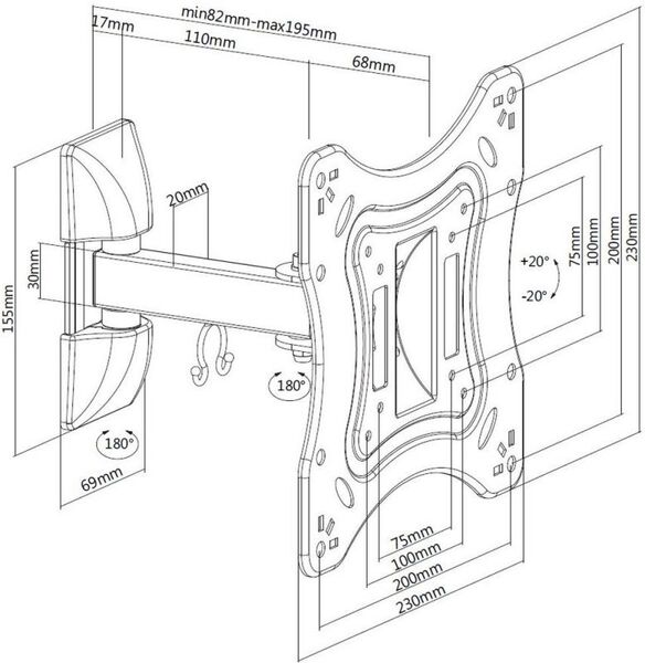 Кронштейн для телевизора Ultramounts UM 865 черный 23"-42" макс.20кг настенный поворотно-выдвижной и наклонный
