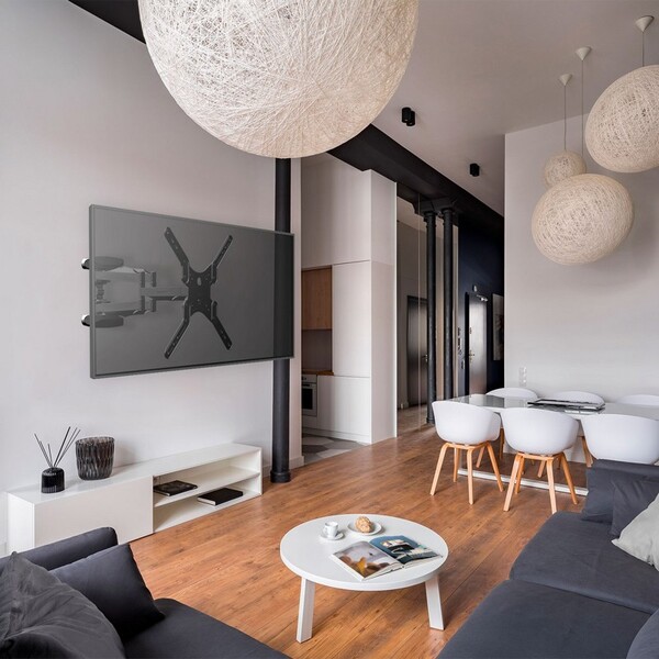 Кронштейн ONKRON 32-60" макс 400 х 400 наклон -2° / +10° поворот 140? Макс нагрузка 36, 4 кг от стены: 42-452 мм, "гармошка", черный