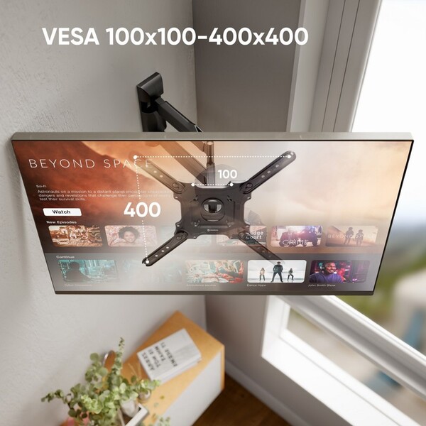 Кронштейн ONKRON 32-55" макс. 400 х 400, 2 колена, наклон -5 + 8, поворот 180 макс, от стены 55-500 мм, черный