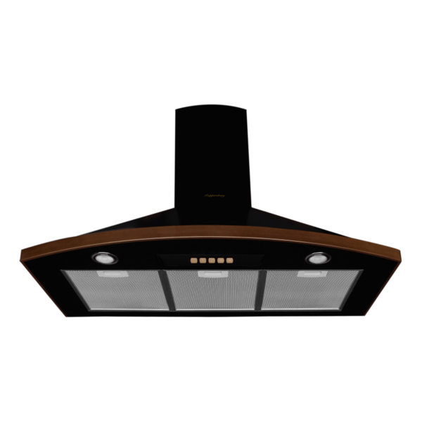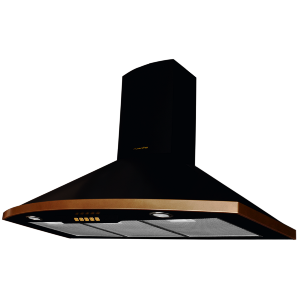 Настенная вытяжка, ширина 90 см, отвод/рециркуляция, 650 м3/час, электронное управление, 3 скорости, галогеновое освещение 2х20 Вт, анодированные алюминиевые жироулавливающие фильтры, таймер, угольный фильтр С6С (опция), 42 дБ, цвет чёрный, отделка цвета бронза