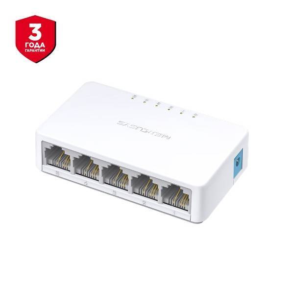 Неуправляемый коммутатор Mercusys MS105, 5-портовый 10/100 Мбит/с настольный коммутатор, 5 портов RJ45 10/100 Мбит/с, пластиковый корпус купить в интернет-магазине TPShop.Ru. Наличный и безналичный расчет, розничные и оптовые продажи. Самовывоз, доставка по Москве и МО, отправка во все регионы России.