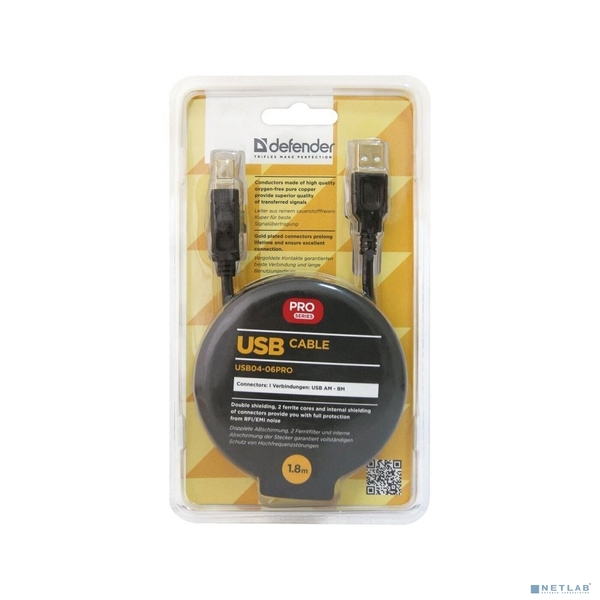 Defender 87430 Кабель USB2.0 AM-BM, блистер, зол.конт, 2фер.фильтра (PROFESSIONAL SERIES), 1.8м