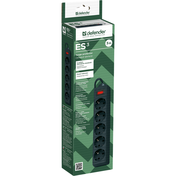 Сетевой фильтр Defender ES 3.0 m Bck 5 розеток, черный купить в интернет-магазине TPShop.Ru. Наличный и безналичный расчет, розничные и оптовые продажи. Самовывоз, доставка по Москве и МО, отправка во все регионы России.