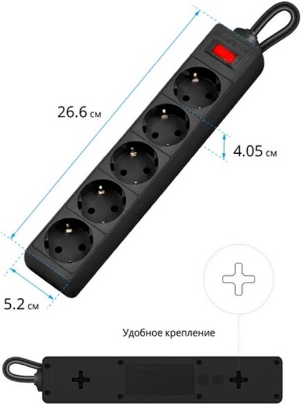 Exegate EX279181RUS Сетевой фильтр ExeGate SP-5-10B (5 розеток, 10м, евровилка, черный)