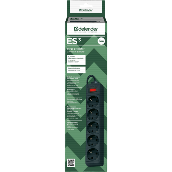 Сетевой фильтр Defender ES 3.0 m Bck 5 розеток, черный