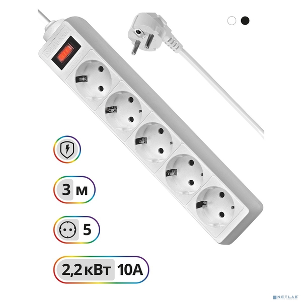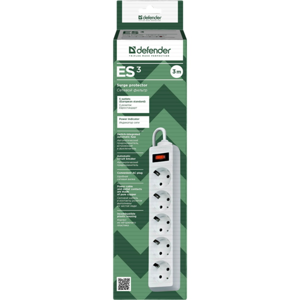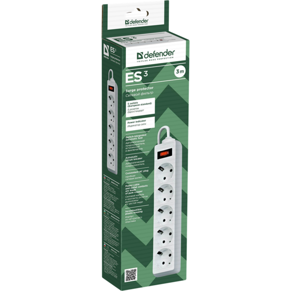 Сетевой фильтр Defender ES 3.0m 5 розеток, белый