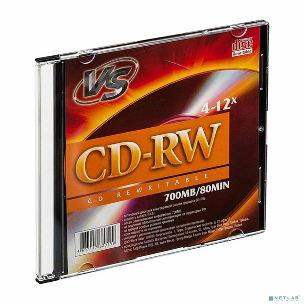 Диск CD-RW VS 700 Mb, 12x, Slim Case (5), (5/200). купить в интернет-магазине TPShop.Ru. Наличный и безналичный расчет, розничные и оптовые продажи. Самовывоз, доставка по Москве и МО, отправка во все регионы России.