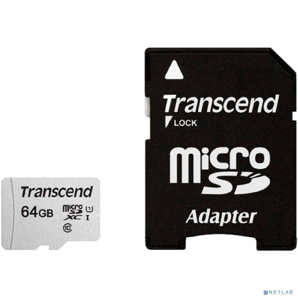 Transcend TS64GUSD300S-A 64GB, microSDXC, Class 10, UHS-I U1, (SD адаптер), TLC