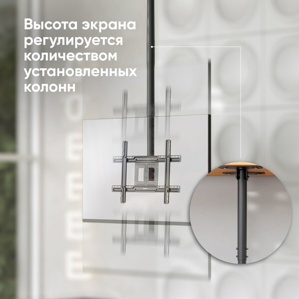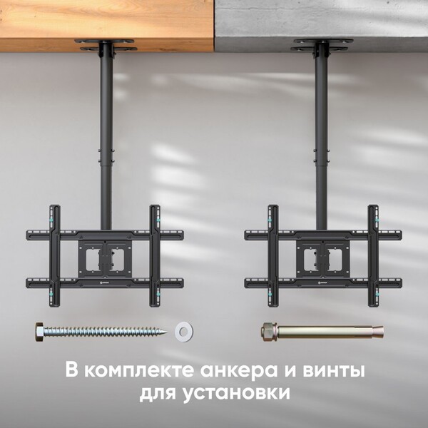 ONKRON Кронштейн потолочный 32-57" макс 400 х 600 высота 832-3000 мм наклон -5° / +15° поворот: ±30° Макс нагрузка: 69 кг