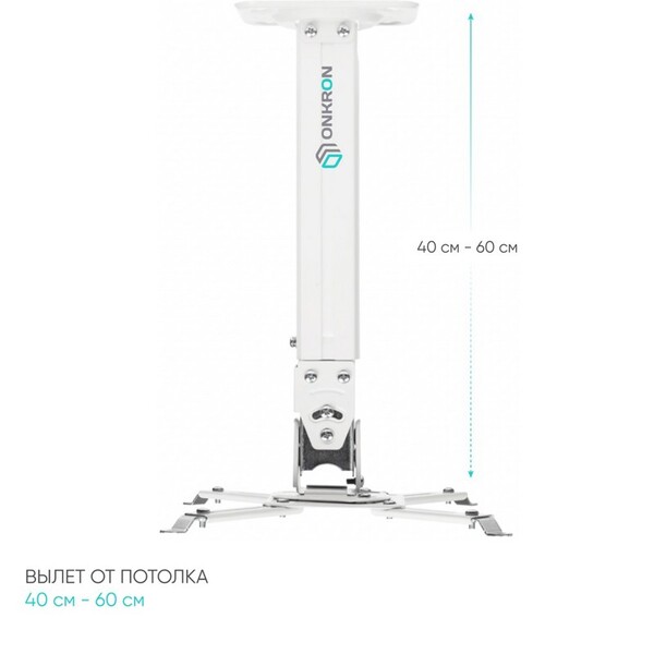 Кронштейн потолочный для проектора ONKRON/ макс 297х297, вылет от потолка 375-610мм, наклон -12°/+12° поворот: ±100° Макс нагрузка: 15,1кг