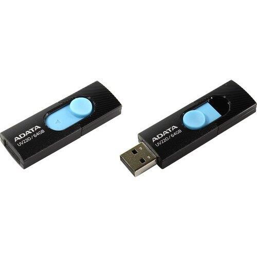 Флеш накопитель 64GB A-DATA UV220, USB 2.0, черный/голубой купить в интернет-магазине TPShop.Ru. Наличный и безналичный расчет, розничные и оптовые продажи. Самовывоз, доставка по Москве и МО, отправка во все регионы России.