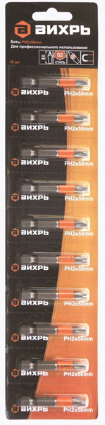 Вихрь [73/6/6/1] Набор бит PH2 50 мм (10шт)