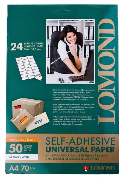 Наклейка LOMOND Самоклеющаяся 24 деления 70*37/A4 (21X29,7)/50л. купить в интернет-магазине TPShop.Ru. Наличный и безналичный расчет, розничные и оптовые продажи. Самовывоз, доставка по Москве и МО, отправка во все регионы России.