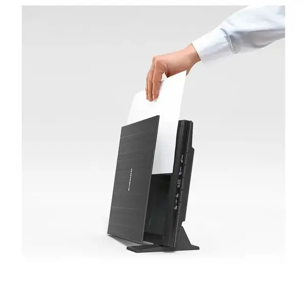 - Подставка для вертикальной установки сканера позволяет сэкономить место. При вертикальном размещении сканера возможно сканирование.