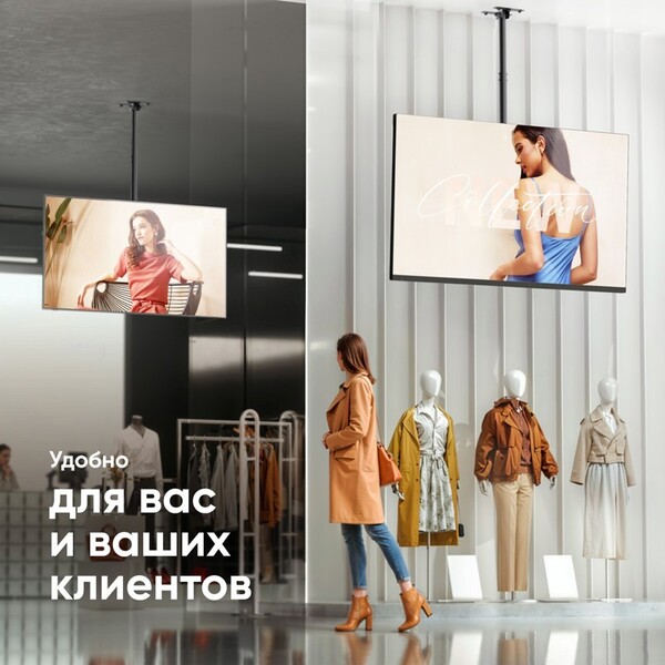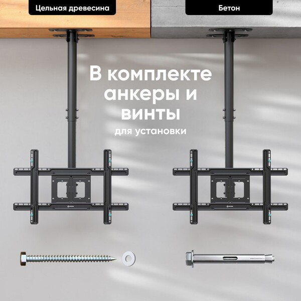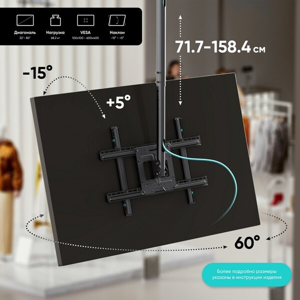 ONKRON Кронштейн потолочный 22-70" макс 400 х 600 высота 717-1584 мм наклон -5° / +15° поворот: 60° Макс нагрузка: 68, 2 кг