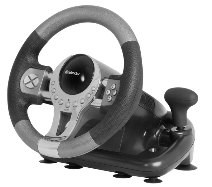 Defender FORSAGE GTR / PC / USB 3.0 / D-Pad - 8 / 12 кн.+ рычаг передач / вибр. руля / блок газ+тормоз / присоски.
