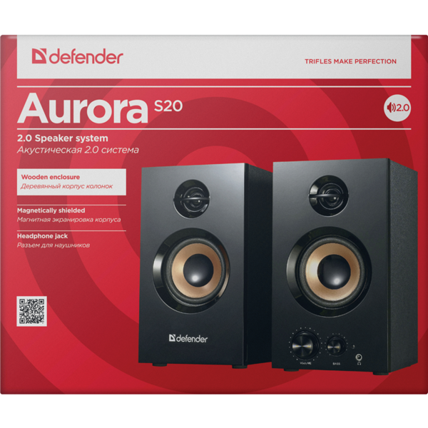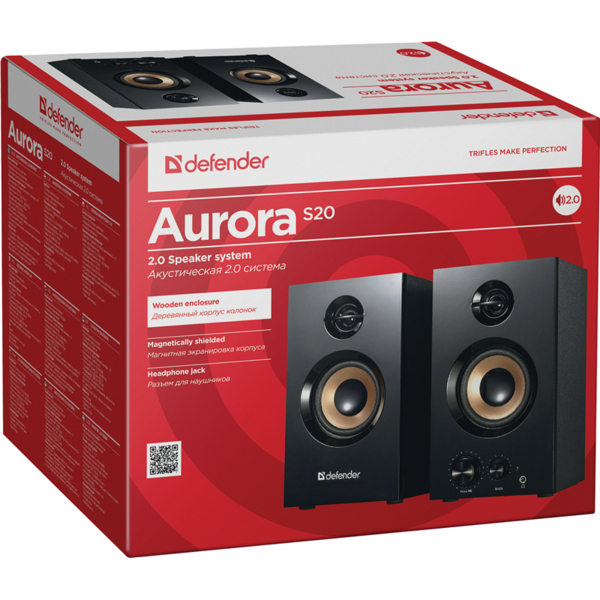Defender Aurora S20, 2.0, Деревянный корпус, 2x10W, bass, 20-20000Гц,