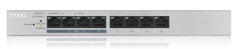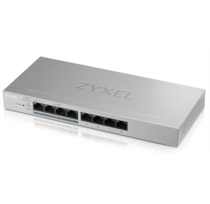 Zyxel GS1200-8HP, 8xGE (4xPoE+), настольный, бесшумный (без вентилятора), с поддержкой VLAN, IGMP, QoS и Link Aggregation, бюджет PoE 60 Вт