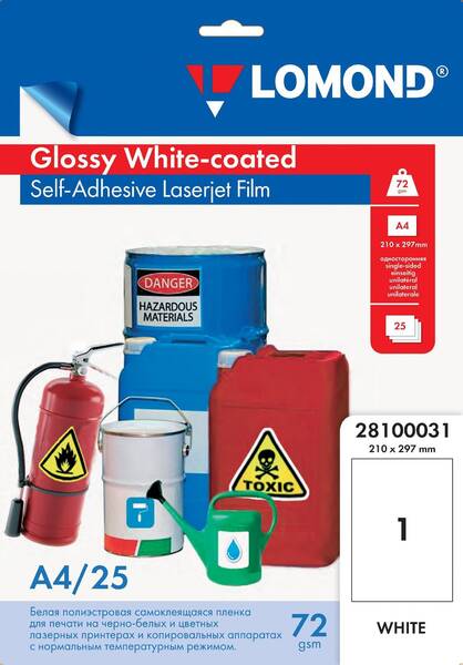 Самоклеющаяся плёнка LOMOND Белая Глянцевая для цв.лаз.принтеров 25л.